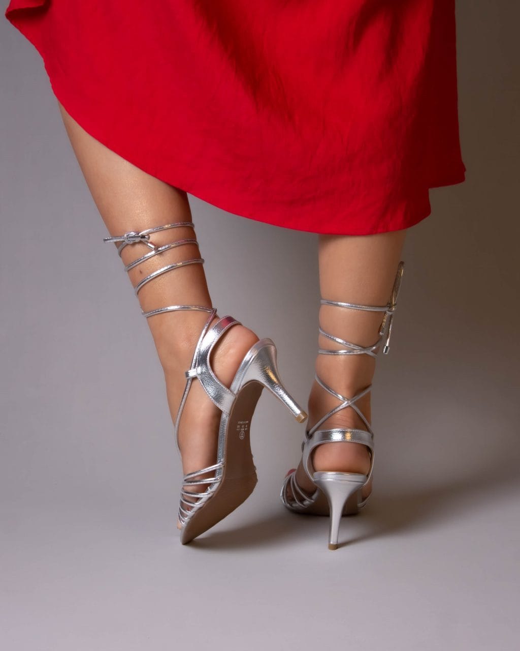 Com acabamento metalizado em prata, essa sandália é ideal para quem busca brilho e sofisticação em um único modelo. O salto de 7cm valoriza a postura, enquanto as tiras delicadas e a amarração no tornozelo oferecem charme e firmeza. Um calçado que transforma produções simples em visuais impactantes e cheios de personalidade.