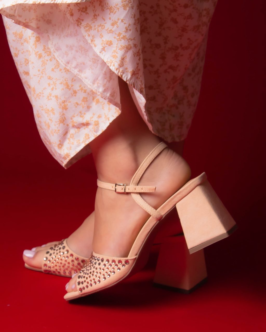 Essa sandália é a escolha perfeita para quem deseja unir glamour e conforto em um único modelo. O acabamento em camurça combinado ao brilho das aplicações cria um visual marcante e sofisticado. O salto alto valoriza a postura e transforma qualquer look, tornando-se indispensável para composições que pedem estilo e elegância em cada detalhe.